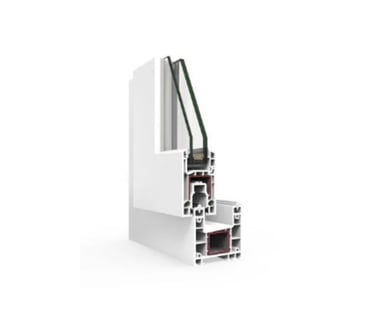Sistema de janelas batentes com aro fixo de 70 mm de profundidade, compatível com vidros de até 40 mm. O perfil de 5 câmaras proporciona elevado isolamento térmico e eficiência energética, garantindo conforto e desempenho fiável em qualquer instalação.
