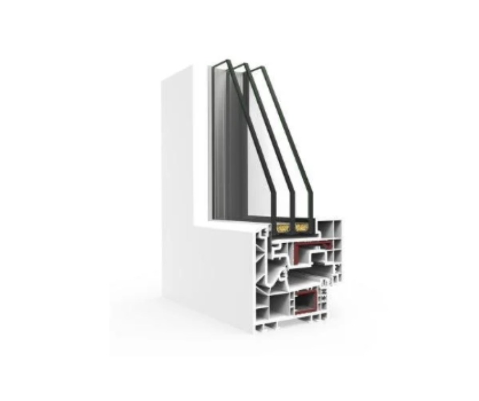 Sistema de janelas batentes com aro fixo de 70 mm de profundidade, compatível com vidros de até 40 mm. O perfil de 5 câmaras proporciona elevado isolamento térmico e eficiência energética, garantindo conforto e desempenho fiável em qualquer instalação.